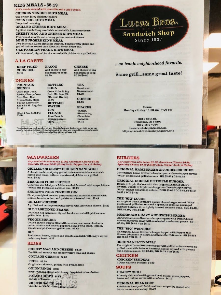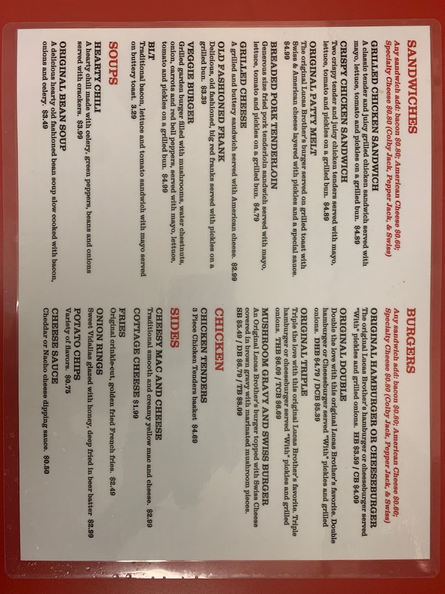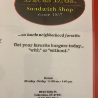Welcome to Lucas Brothers Sandwich Shop, a hidden gem nestled in Columbus, Indiana. This charming eatery delights with a menu that showcases freshly made sandwiches and juicy burgers, redefining comfort food. Customers rave about the double patty melt and grilled chicken sandwiches, each cooked to perfection. The grilled onions and perfectly crispy fries elevate the flavors, turning every bite into a nostalgic experience.